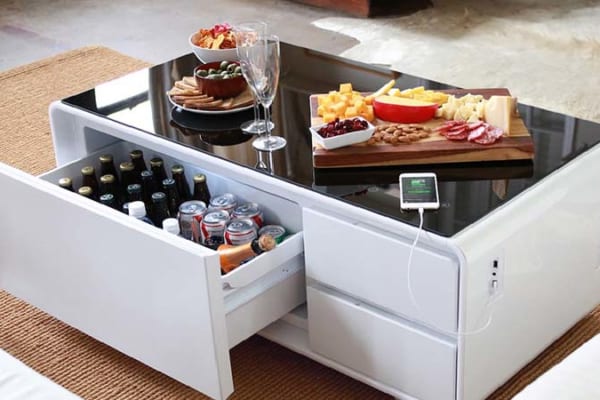 Bạn đang xem một sản phẩm điện ảnh hay tại nhà , tuy nhiên lại không có nhu cầu rút khỏi ghế để lấy thêm đồ uống hay thức ăn vặt. Chiếc bàn café thêm vào tủ đông giá và cổng sạc usb sẽ là cách cho bạn. Bạn chỉ cần ngồi tại chỗ, mở nhẹ chiếc tủ ở dưới bàn. Bạn có thể có ngay những đồ uống mát đông giá và món ăn hàng vặt nhấm nháp suốt sản phẩm. Chưa kể, bạn nhiều khả năng sạc mobile của bản thân ngay tại chiếc bàn.