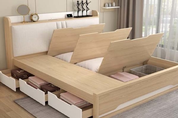 Giường ngủ không lãng phí khoảng không là một sáng chế xuất sắc, giúp xử lý vấn đề về khoảng không với các gian phòng ngủ nhỏ. Những cái giường ngủ này có thiết kề bên trên là nơi để nằm ngủ , ở bên dưới là kệ và tủ. Bạn có khả năng dễ chịu để y phục, mền gối không áp dụng liên tục ở kệ và tủ này. Vài ba chiếc tủ có xây dựng kệ sách ở cạnh hông giường.